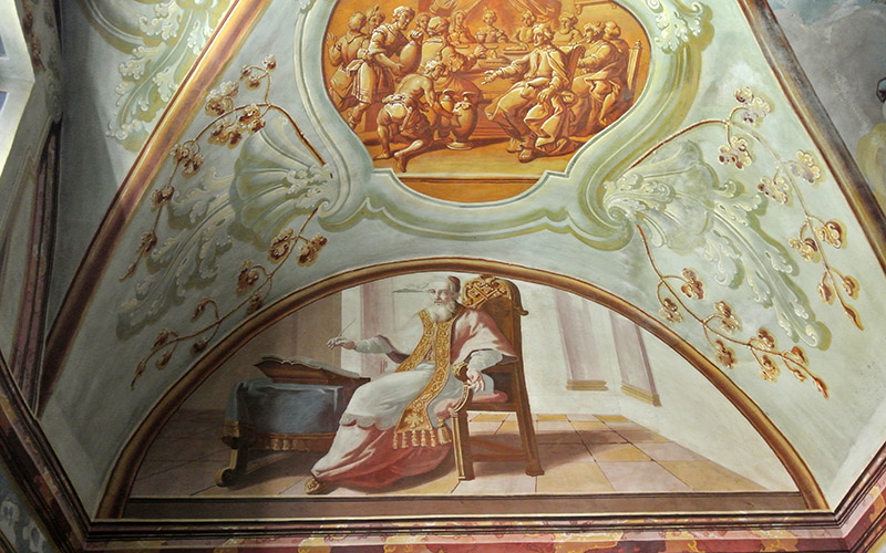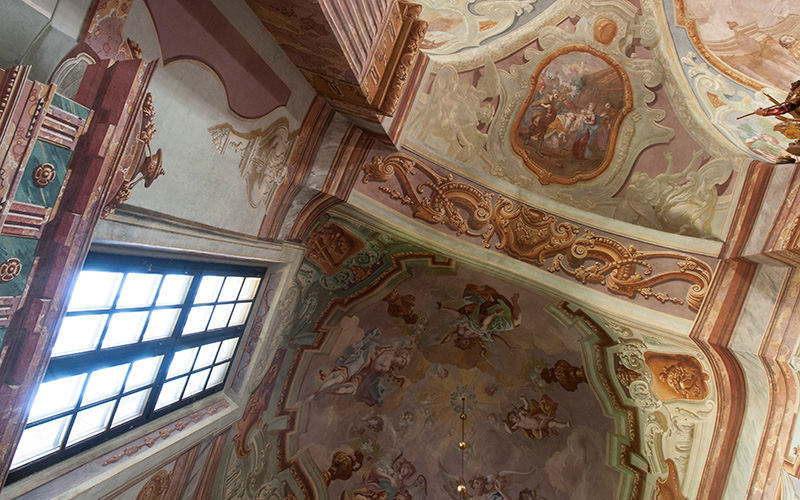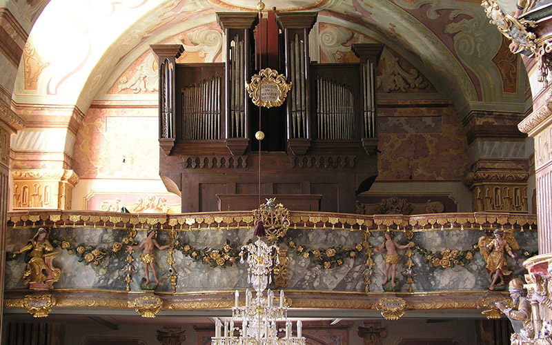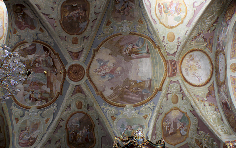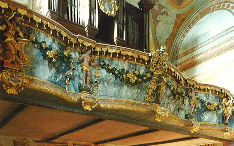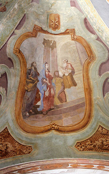 Crkva sv. Marije Snježne nekad je imala dvostruki kor, no nakon ugradnje novih orgulja 1863. uklanja se gornje pjevalište. Ostalo je sačuvano donje pjevalište, na čijoj su ogradi prikazane su scene Navještenja i Drva života.